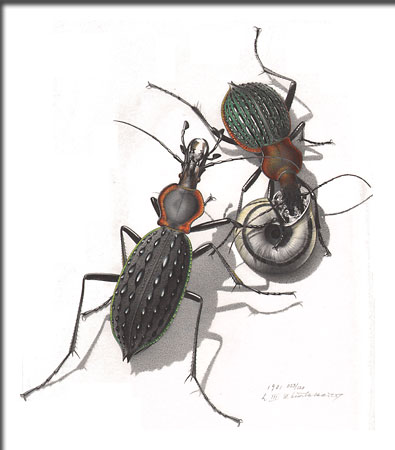 Chinesischer Laufkäfer Lithografie handkoloriert 1981 Büttenpapier 45 × 57 cm Preis (ohne Rahmung): CHF 1'400.–
